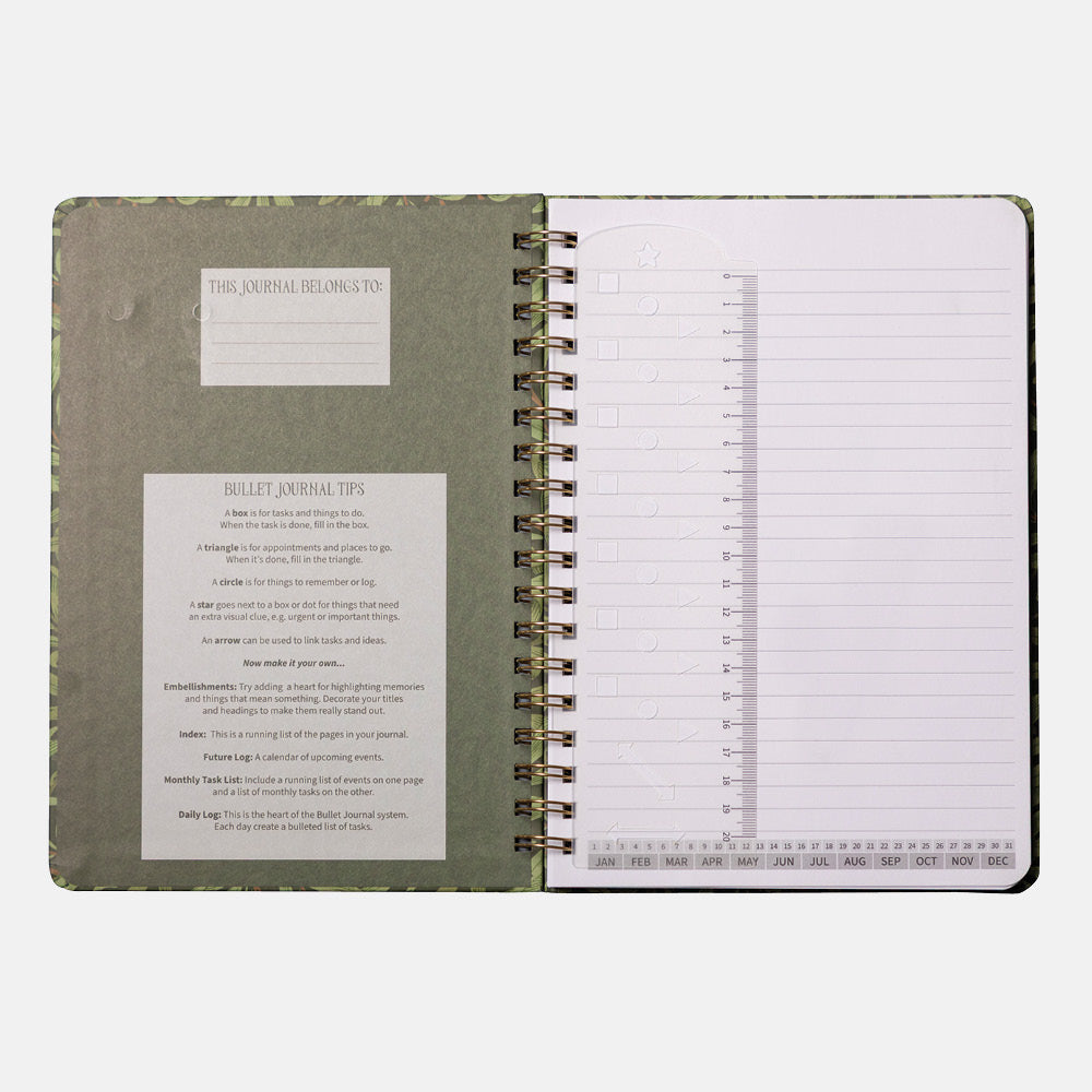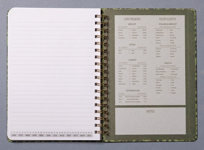William Morris Willow B5 Lined Notebook: Day Month Marker, Ruler Conversion Info