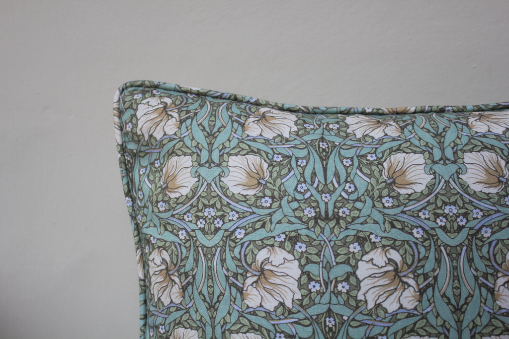 William Morris Pimpernel Green Piped Edge Cushion Cover