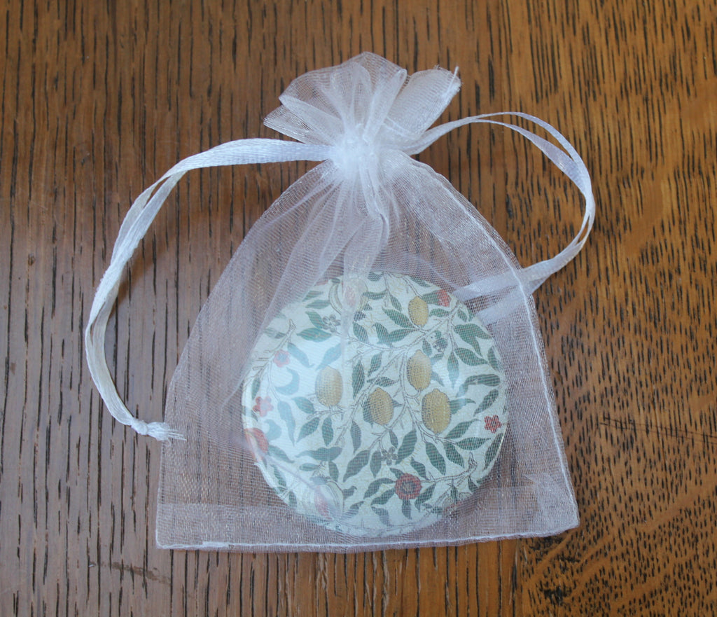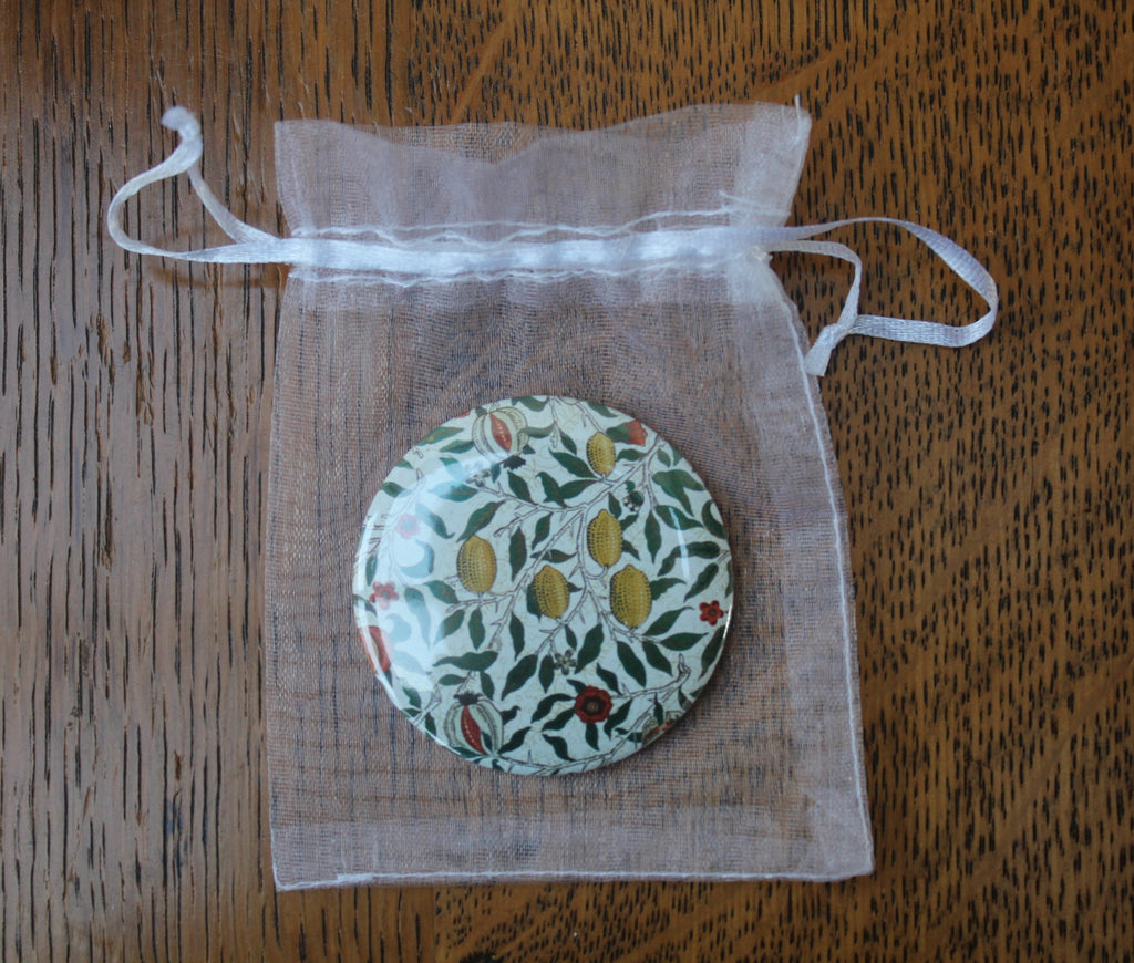 - 1 x pocket mirror, featuring a design by William Morris on one side, in an organza bag