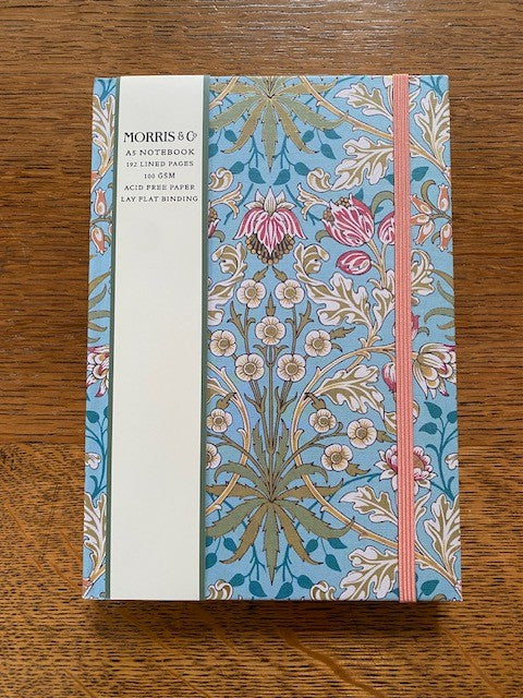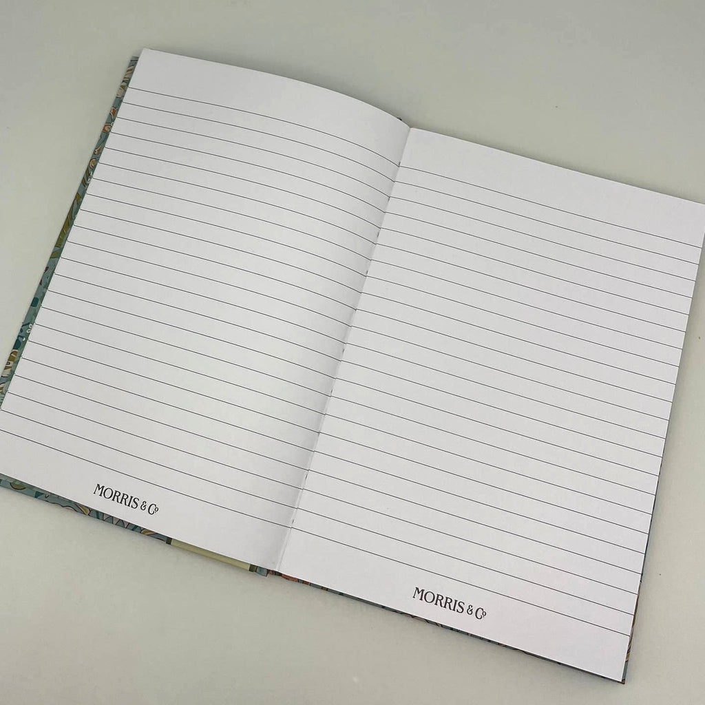 - 1 x Morris & Co. A5 notebook with 192 lined pages, 100 gsm acid free paper, lay flat binding, elastic strap and ribbon bookmark