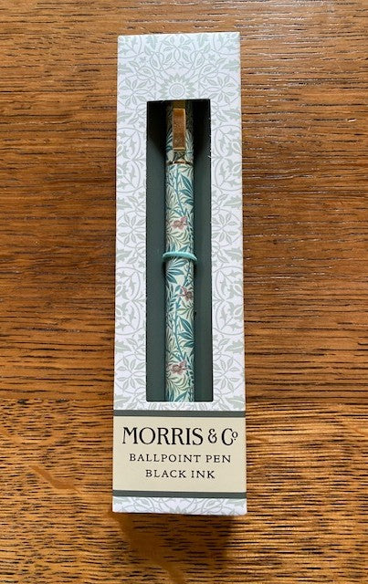 - 1 x Morris & Co. metal ballpoint pen with black ink featuring the Larkspur design from 1875