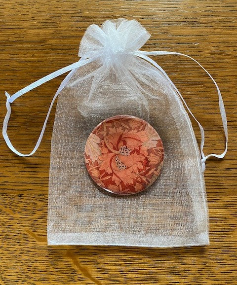 - 1 x pocket mirror, featuring a design by William Morris on one side, in an organza bag