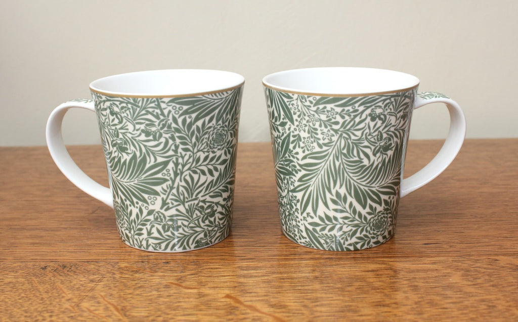 - 2 fine china mugs featuring the Larkspur pattern in their own branded gift box
